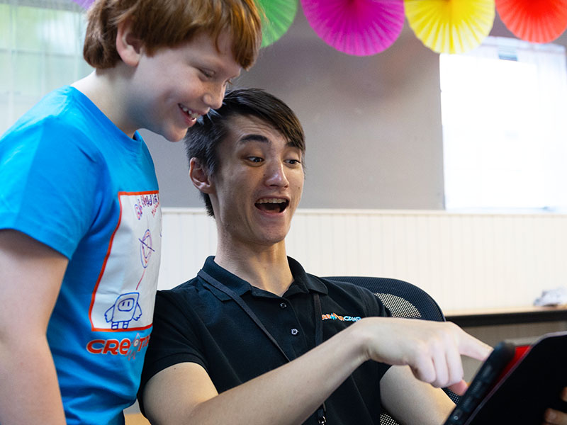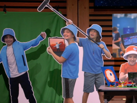 One of the first tasks we had was to mock up a set for the show. Jacky, our lead designer, wanted to capture the essence of what Creator Camp is all about. A space where there’s creative things being made everywhere! Since it was still camp time, we were able to ask a few parent’s if they were cool with their child being part of the cardboard cutouts for the set. They were more than excited to see their child on TV!